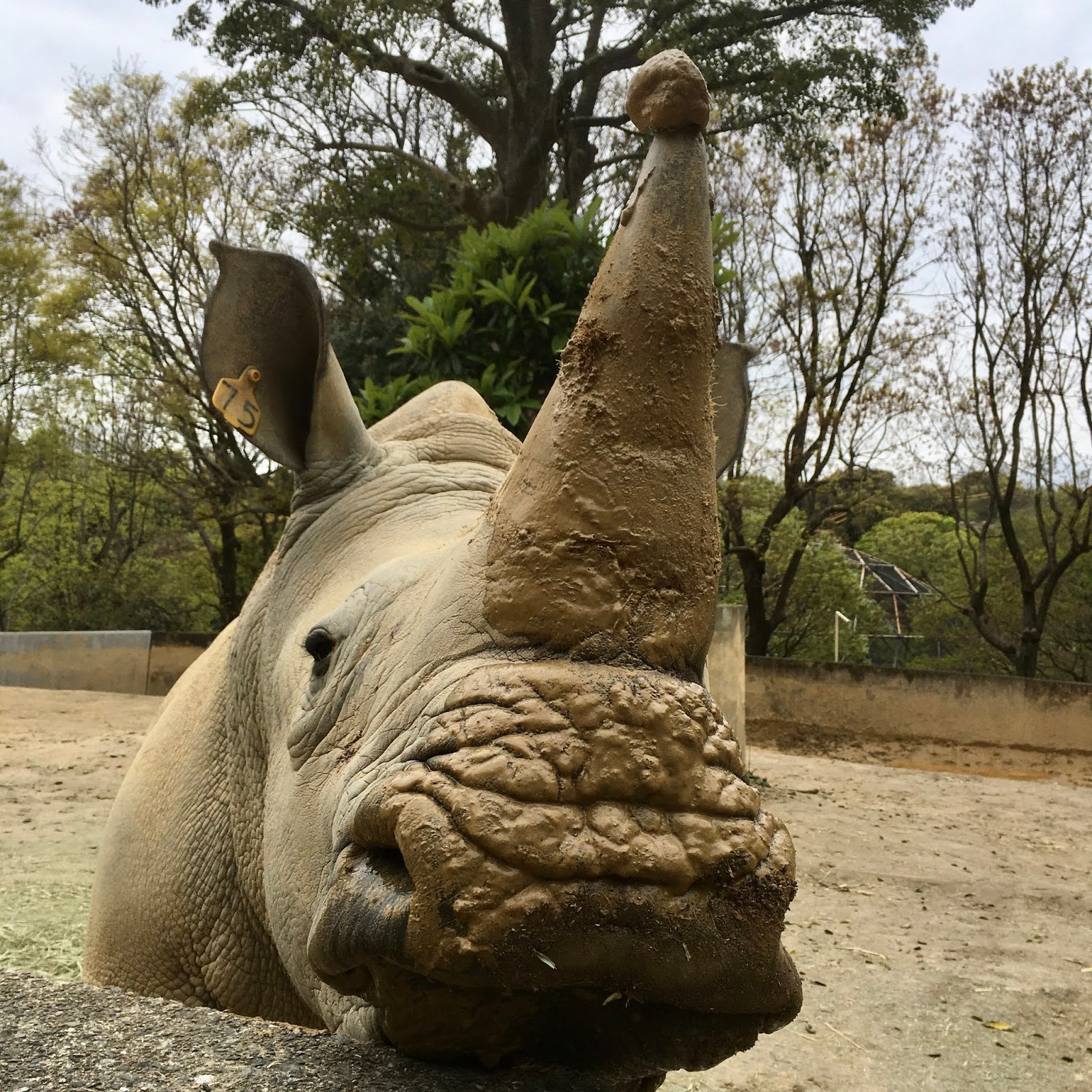 夜の動植物園の翌日は、サイたちが寝不足になるのか起きてくれない、と困った様子の飼育員さん。